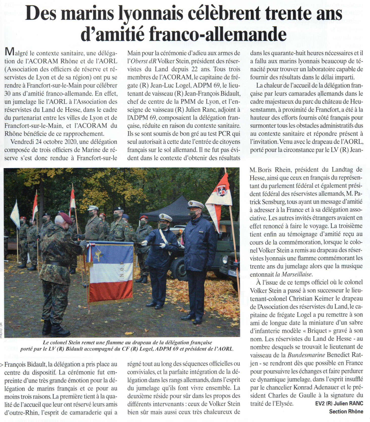 L’AOR de LYON célèbre 30 ans de Jumelage avec l’association des réservistes de Francfort !