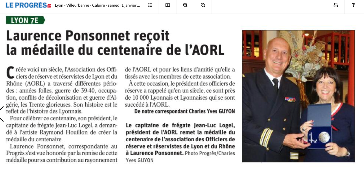 Source : Le Progrès du samedi 1er janvier 2022 – https://www.leprogres.fr/societe/2021/12/31/laurence-ponsonnet-recoit-la-medaille-du-centenaire-de-l-aorl